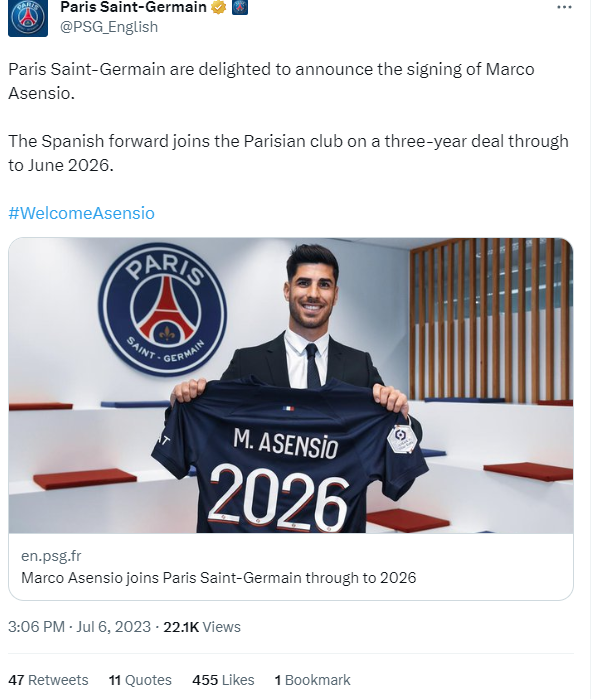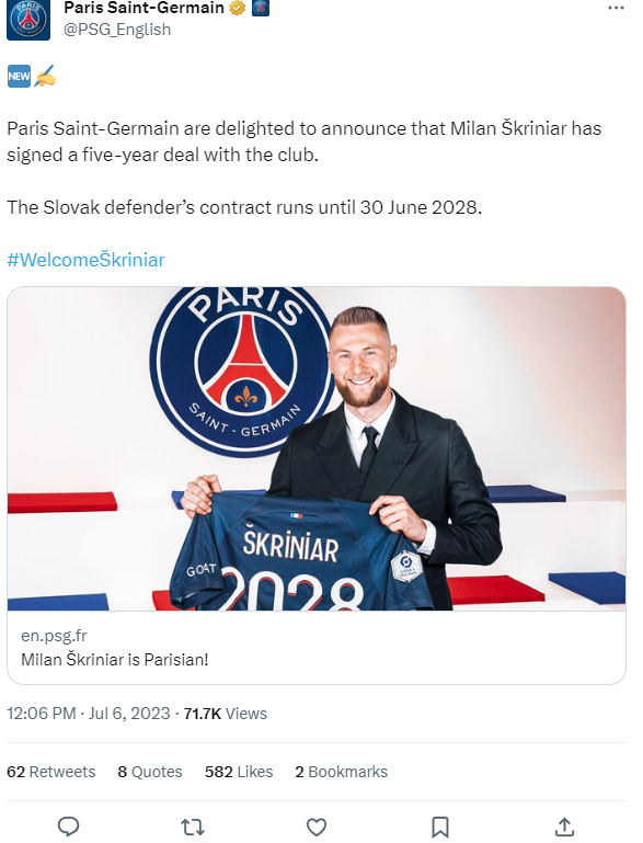 PSG a anunțat, printr-un comunicat oficial, transferurile lui Milan Skriniar (28 de ani) și Marco Asensio (27 de ani). Ambii au fost semnați din postura de jucători liberi de contract. Ultima dată, Skriniar a evoluat la Inter, în timp ce Asensio la Real Madrid.