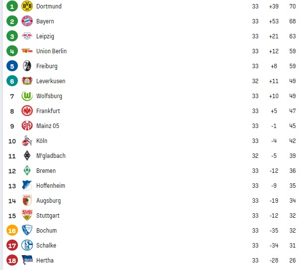 În ultima etapă, Dortmund joacă cu Mainz, locul 9 din Bundesliga, iar Bayern va juca cu Koln, actualmente locul 10.