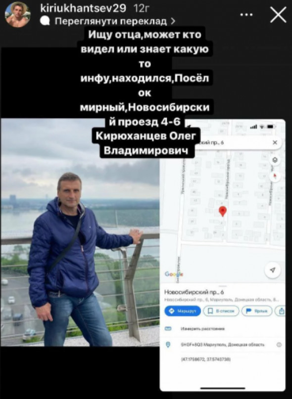 Fundașul dreapta a postat pe Instagram o fotografie cu tatăl lui, Oleg Vladimirovich Kiryukhantsev, și localizarea adresei acestuia. Bărbatul se află în localitatea Mirnoye, regiunea Donețk, și nu a mai luat legătura cu fiul său de câteva zile. Igor Kyryukhantsev speră ca cineva să-i fi văzut tatăl recent și să-i dea de veste.