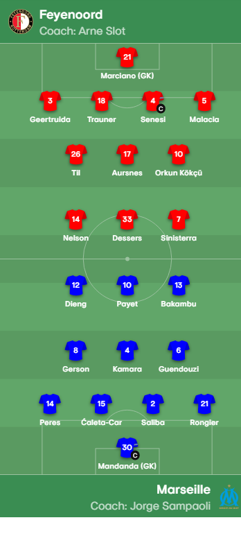 Min. 46: GOL FEYENOORD! Dessers face „dubla” după doar 9 secunde din partea secundă! A fost prima atingere de balon a olandezilor, după ce jucătorii lui Marseille au început de la mijlocul terenului.