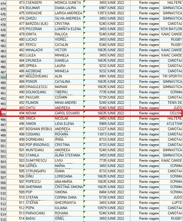 Sindicaliștii se folosesc și de exemplul rentei viagere lunare, de 16.635 lei, pe care Eduard Novak o primește la fel ca sportivi de excepție din istoria României. Nume precum Nadia Comăneci, Ana Maria Popescu, Elisabeta Lipă, Gabriela Szabo, Ivan Patzaichin și Marian Drăgulescu sunt invocate de cei de la SNST.