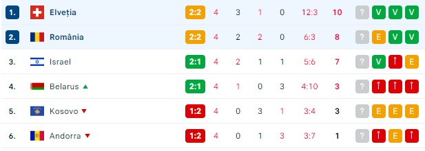 Deocamdată ocupă poziția a doua, cu 7 puncte și trei avans față de Israel, care se află pe ultima treaptă a grupei I. Liderul incontestabil este chiar adversarul din această seară.