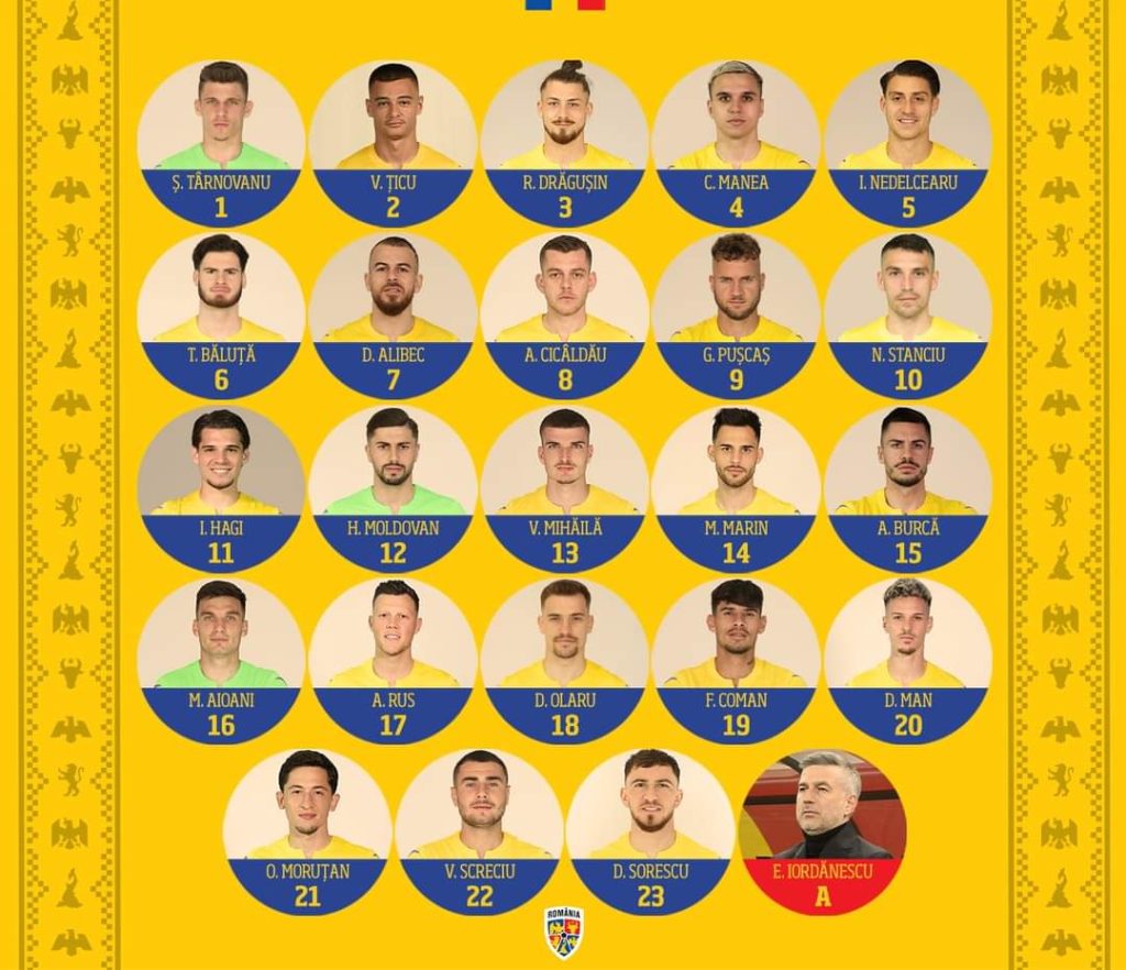 Rezerve: 1. Târnovanu, 16. Aioani – 2. Țicu, 6. Băluță, 8. Cicâldău, 9. Pușcaș, 13. Mihăilă, 14. M. Marin, 17. Rus, 18. Olaru, 20. Man, 21. Moruțan