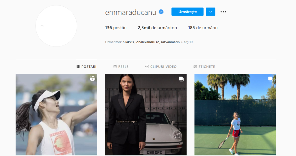 Emma Răducanu și-a scos poza de profil de pe Instagram. Conform ProSport, aceasta și-a șters și descrierea, unde apăreau patru orașe importante pentru ea: București (unde trăiește bunica sa), Toronto (unde s-a născut), Shenyang (unde s-a născut mama ei) și Londra (unde trăiește acum).
