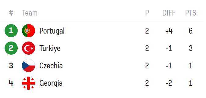 Clasamentul grupei F după Turcia – Portugalia 0-3