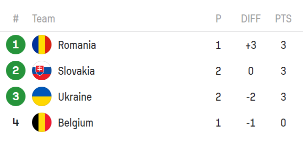Dacă România pierde în fața Belgiei, situația va deveni extrem de complicată în grupa E. Cea de-a treia și ultima rundă le va găsi pe fiecare dintre selecționate cu trei puncte în clasament.