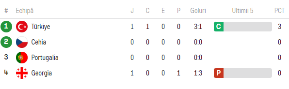 Așa arată clasamentul grupei F după Turcia – Georgia 3-1