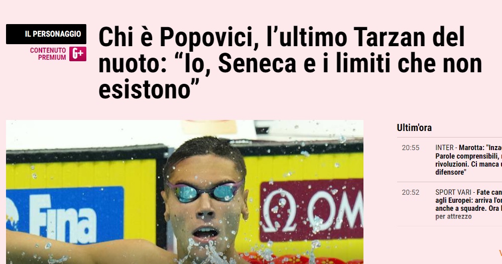„Cine e David Popovici, noul rege al probei de 100 de metri”, au titrat și cei de la Gazzetta dello sport, care i-au dedicat românului un material special. Italienii au amintit despre regimul de viață al bucureșteanului, între altele. „Ultimul Tarzan din înotul mondial”, au titrat italienii.