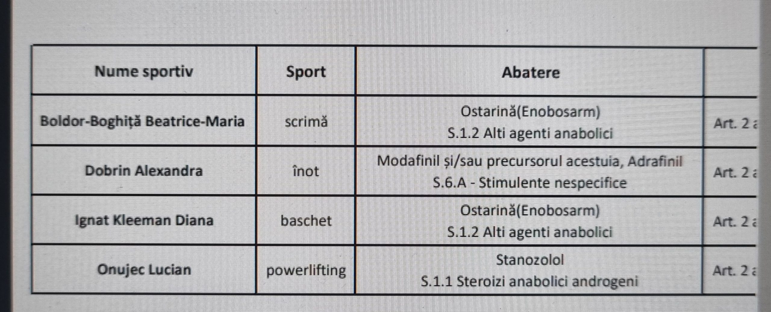Informația a fost publicată de ProSport.ro și apare și pe site-ul Agenției Naționale Anti-Doping în lista în „lista persoanelor suspendate temporar din activitatea sportivă pentru încălcarea reglementărilor anti-doping” (VEZI FACSIMIL).