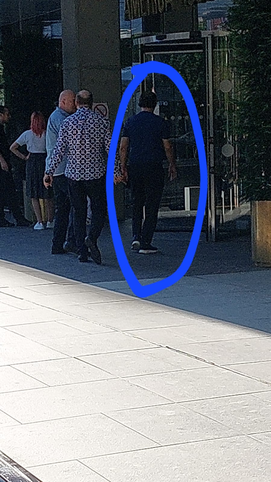 Acesta a fost reperat de către reporterii aflați la fața locului în momentul în care a intrat în clădire.