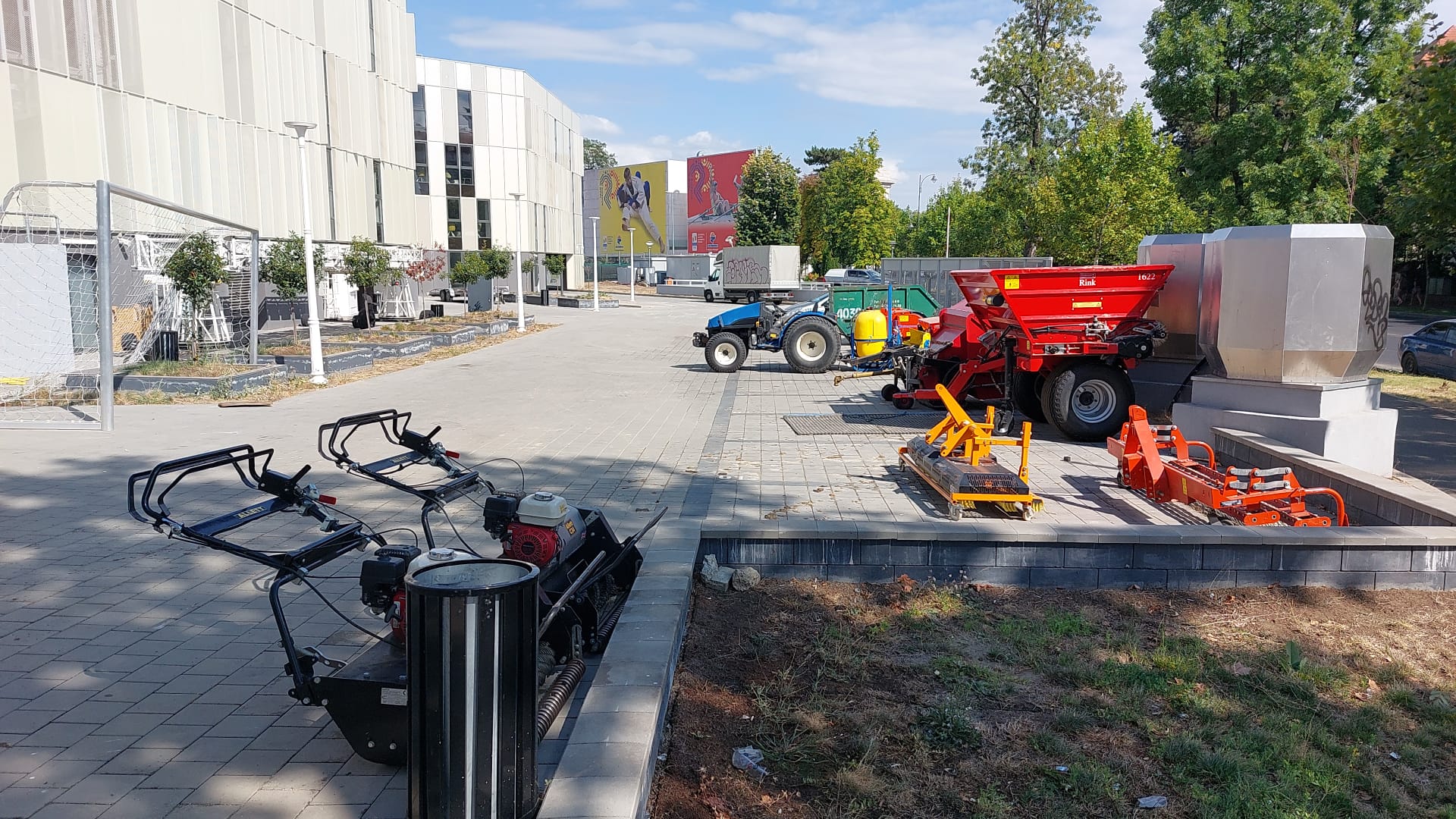 Mai mult, în jurul stadionului, mai exact în parcarea media, există utilaje, dar acestea par mai degrabă pentru întreținere decât pentru schimbarea gazonului.