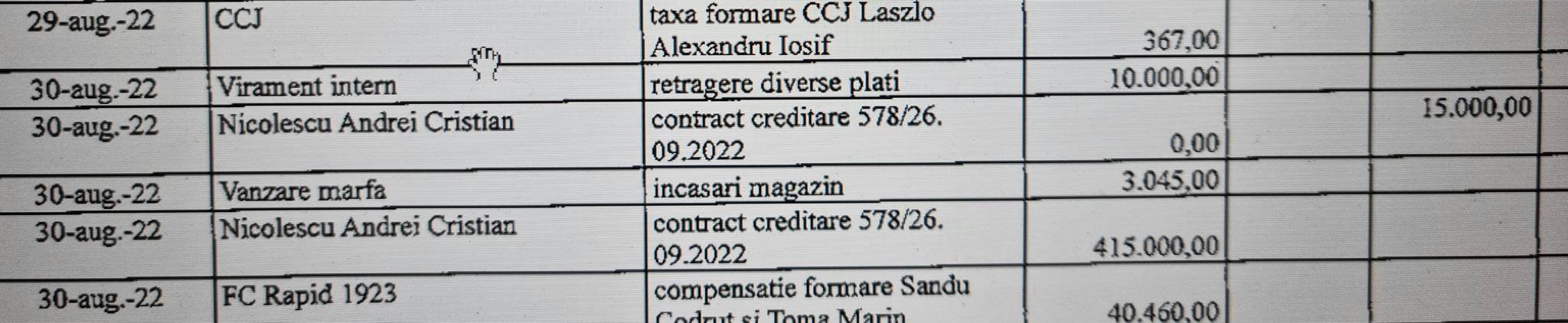 Andrei Nicolescu apare în actele contabile ale SC Dinamo 1948 SA cu două contracte de creditare, ambele înregistarate la data de 26 August, adică în pline negocieri între One și Dorin Șerdean. Unul dintre contracte are valoare de 15.000 euro, al doilea în valoare de 415.000 lei. (VEZI FOTO)