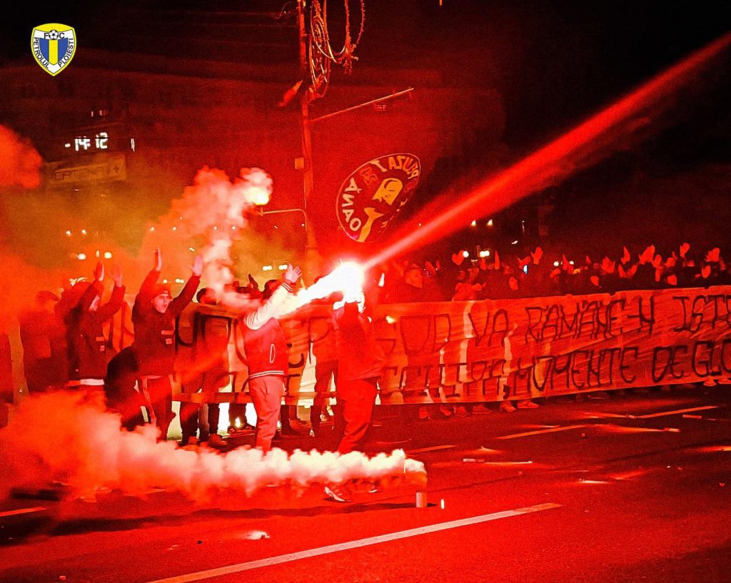 Petrolul – Rapid este meciul zilei în SuperLiga României. Duelul este programat la ora 20.00, iar în tribune se anunță spectacol. Fanii formației gazdă și-au făcut încălzirea încă de joi și au blocat centrul orașului Ploiești, cu un show de zile mari, așa cum se vede și din imagini.