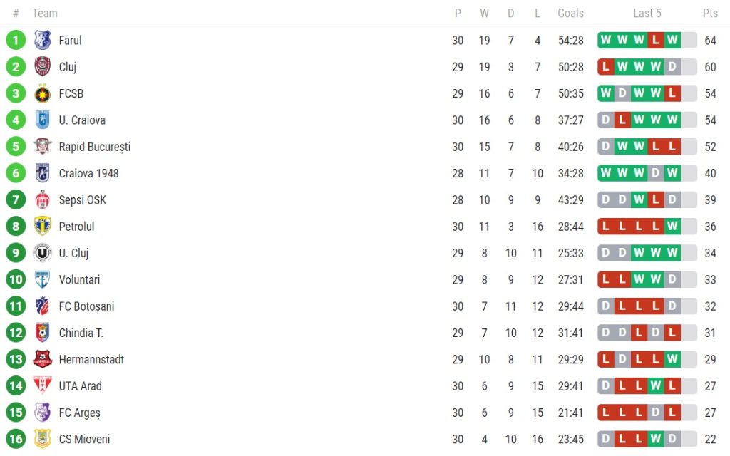 Cum arată acum clasamentul din Liga 1 după Farul – Rapid 2-1