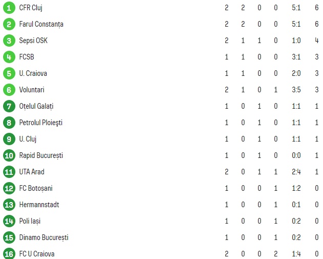Farul Constanţa are punctaj maxim după primele două etapă din Superligă. Echipa lui Gică Hagi s-a impus, scor 4-1, în disputa cu FC Voluntari, dar victoria nu a fost deloc una lipsită de emoţii pentru campioana României.
