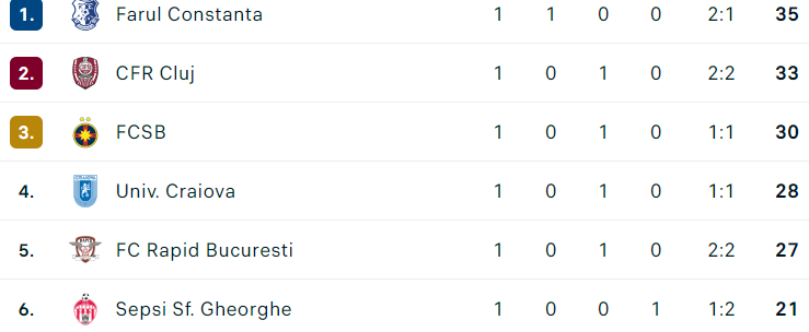 E adevărat şi că CFR-ul a avut un gol anulat, reuşita lui Maglica din prelungiri, nefiind validată după consultarea VAR. Faza a generat un scandal imens, Dan Petrescu acuzând vehement felul cum brigada a interpretat faza respectivă. Iată cum se prezintă clasamentul la finalul meciurilor jucate în această rundă, în care s-au înregistrat următoarele rezultate
