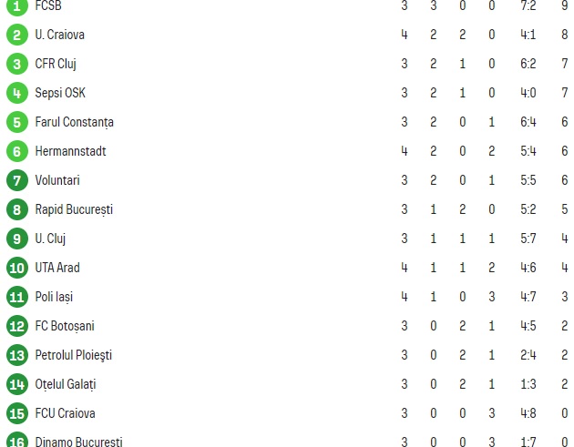 Cum arată clasamentul din Superligă după FC Botoșani – FC U Craiova 0-1.