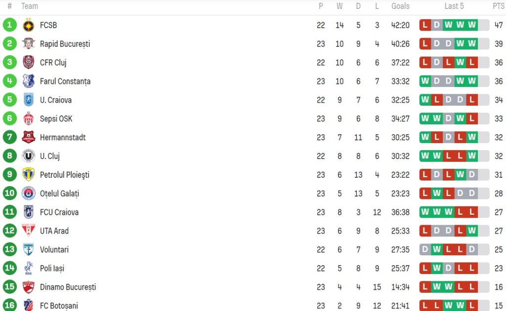 Clasament SuperLiga