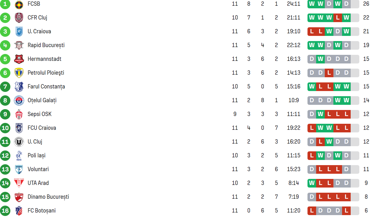 De cealaltă parte, U Cluj a învins-o pe CSA Steaua, 3-1, în grupele Cupei României. Ardelenii ocupă locul 11 în Superliga, cu 11 puncte.
