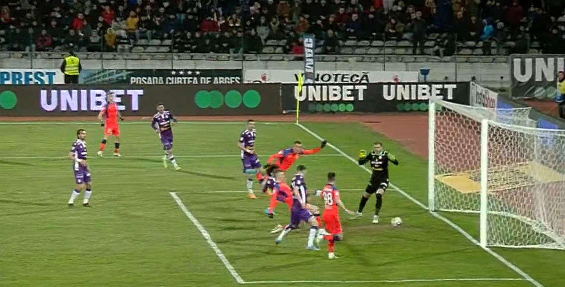 FCSB a deschis scorul pe terenul lui FC Argeș. Faza, una lucrată, a pornit din piciorul lui Octavian Popescu. Perla lui Gigi Becali a mai inventat o pasă de geniu, Darius Olaru a centrat perfect în fața porții, iar Florin Tănase a pus latul pentru primul gol al partidei (Min.38).