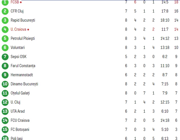 De cealaltă parte, Universitatea Craiova vine tot după o înfrângere în fața campioanei Farul Constanța, 0-2. Trupa din Bănie ocupă locul 3 în Superliga, cu 14 puncte.