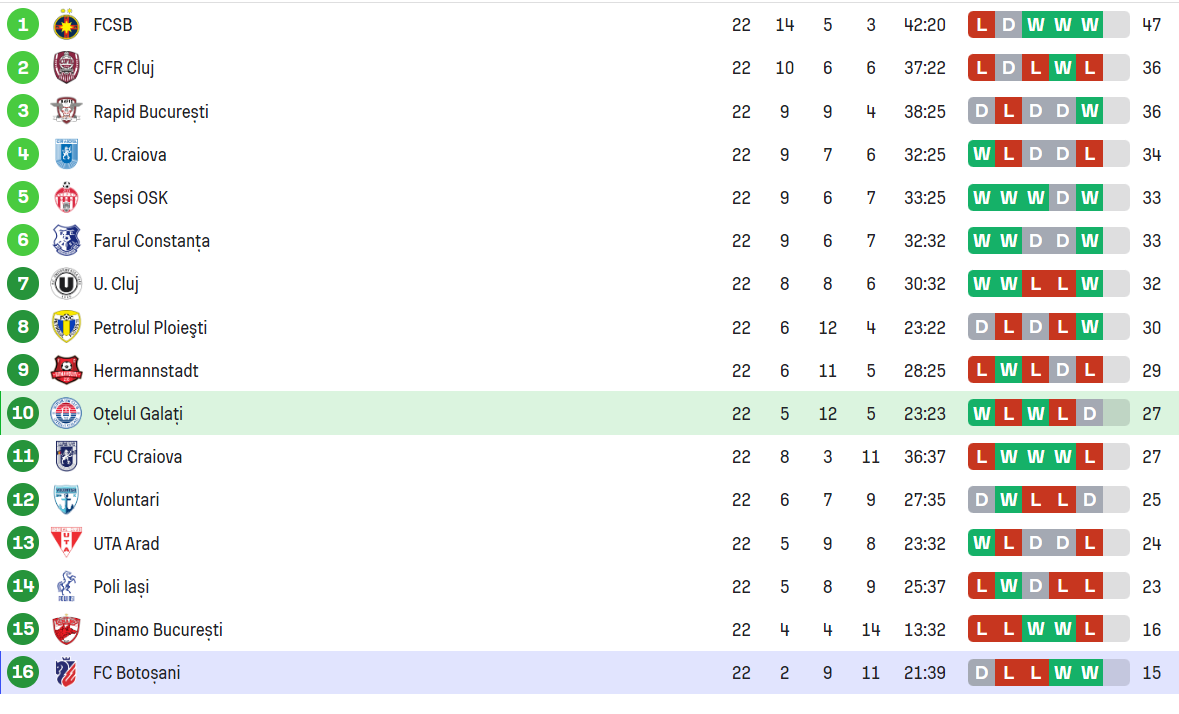 Formația din Berceni și-a consolidat astfel poziția de lider. Sunt 11 puncte avans față de ocupanta poziției secunde, CFR Cluj, care a cedat în fața „lanternei roșii”, FC Botoșani.