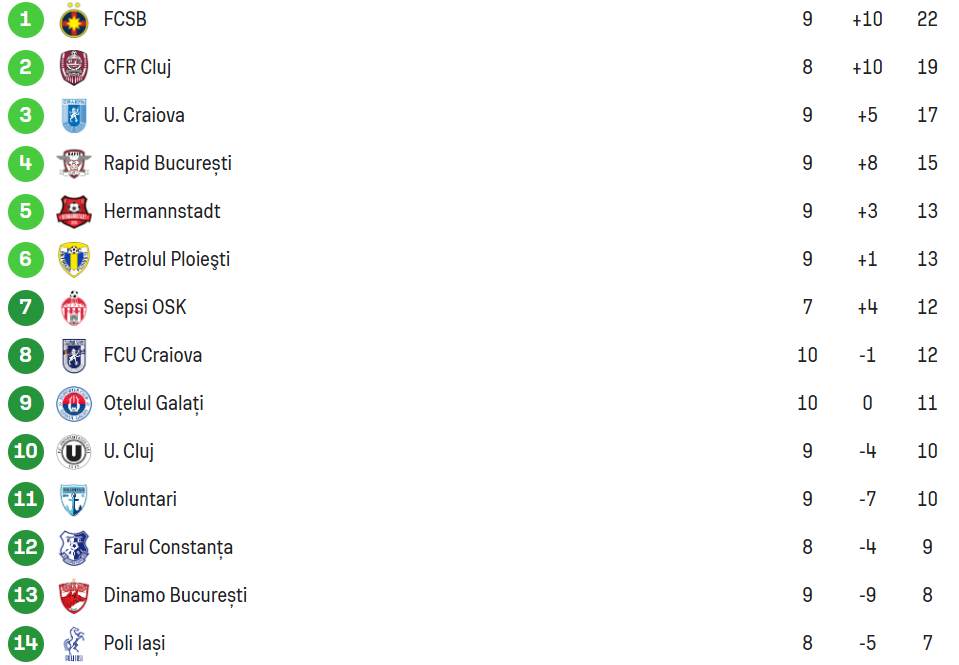 La polul opus, Oțelul Galați este ”regina egalurilor” în această campanie, 8 dintre cele 9 partide ale formație moldave fiind încheiate cu puncte împărție. În ultimul meci de campionat, elevii lui Dorinel Munteanu au terminat la egalitate, pe teren propriu, 0-0 cu Rapid, astfel că sunt și în acest moment fără succes în Superliga, însă se regăsesc pe locul 12, poziționați mai bine decât formații precum Dinamo, Poli Iași, UTA Arad sau FC Botoșani.