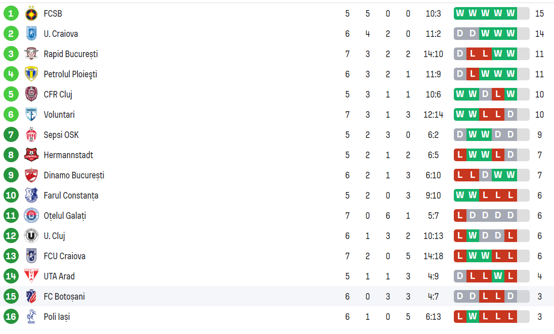 FCU Craiova – Rapid București s-a terminat 3-5, în etapa cu numărul 7 din Superliga.