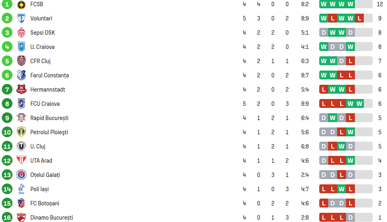 FCU Craiova a învins fără emoții FC Voluntari, scor 3-1, în etapa cu numărul cinci a Superligii, asigurându-și astfel cel de-al doilea succes consecutiv.
