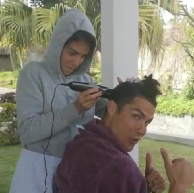 Întreaga lume se afla în izolare în perioada respectivă, din cauza pandemiei de COVID-19. Cristiano Ronaldo și Georgina Rodriguez au realizat un clip viral, în care CR7 este ras în cap de partenera sa.