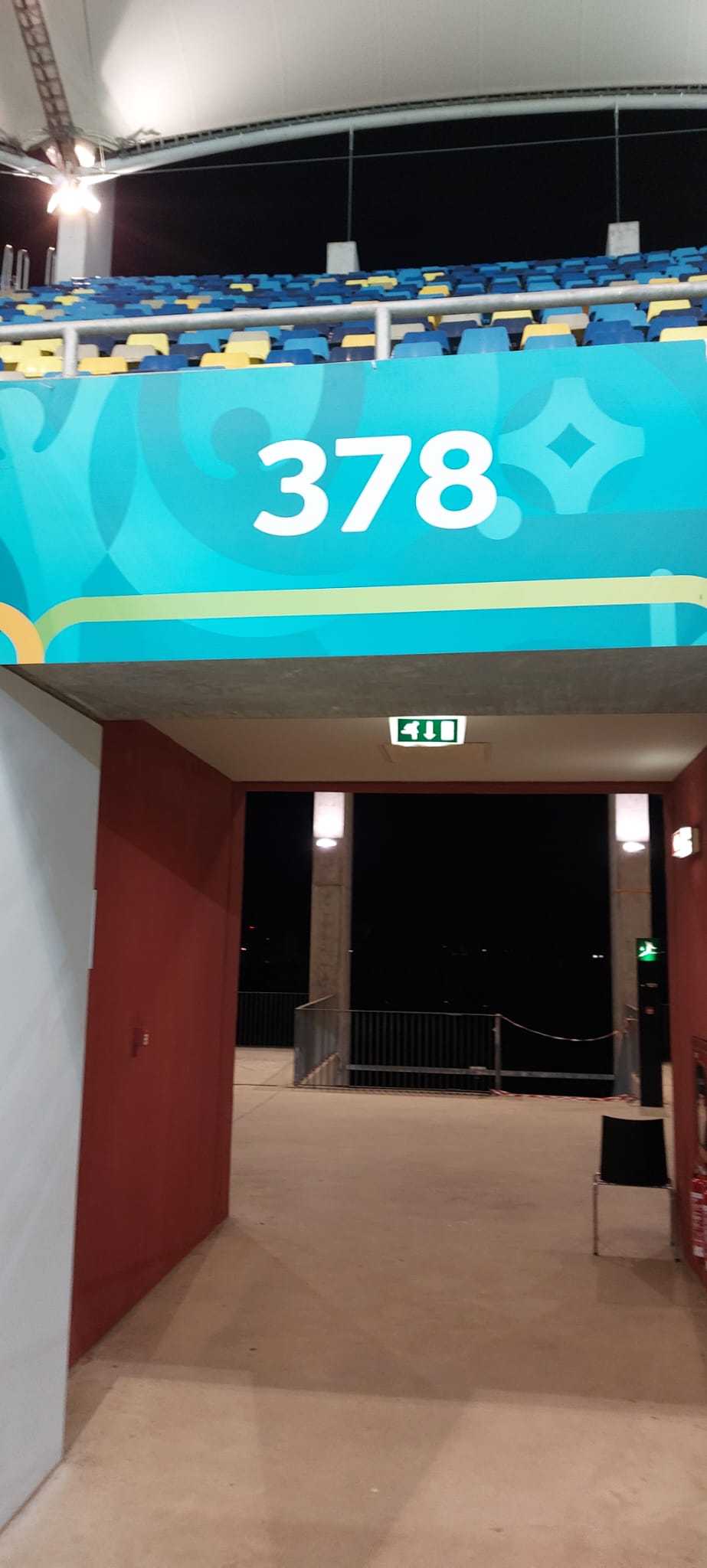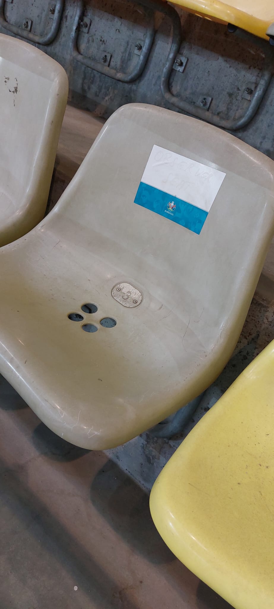 În continuare, într-un sector apropiat de zona atribuită oamenilor presei încă există stickere lipite de scaun pentru oficialii EURO 2020.