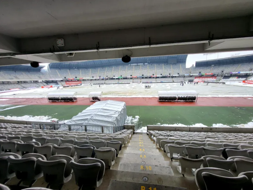 Cea mai proastă veste pentru administratorii Cluj Arena pe care e programat să se joace diseară meciul dintre U Cluj şi Rapid a fost reprezentată de ninsorea care a afectat oraşul ardelean în ziua de dinaintea jocului.