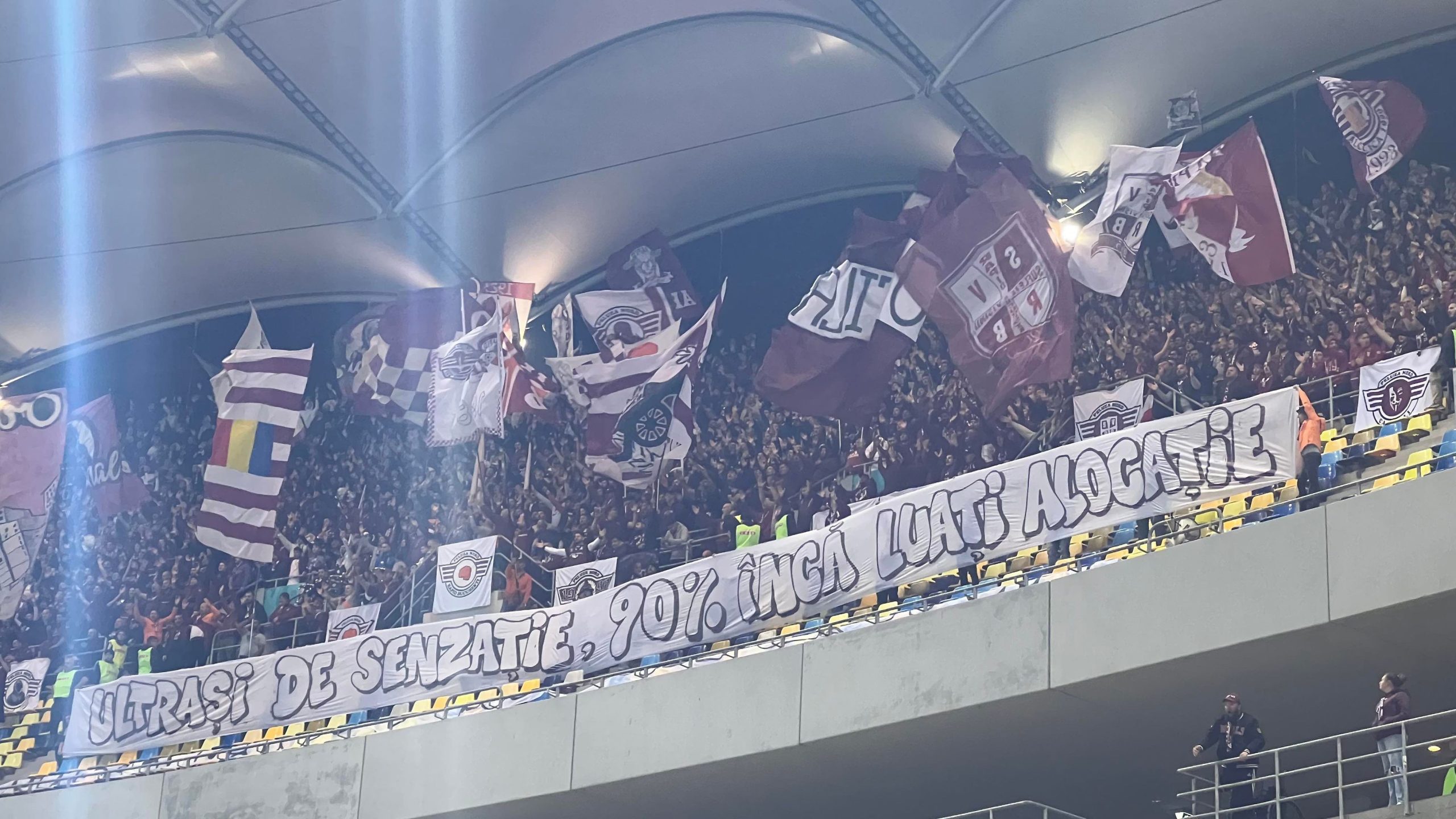 Bannerul roș-albaștrilor a fost însoțit de cunoscutele scandări împotriva rapidiștilor.