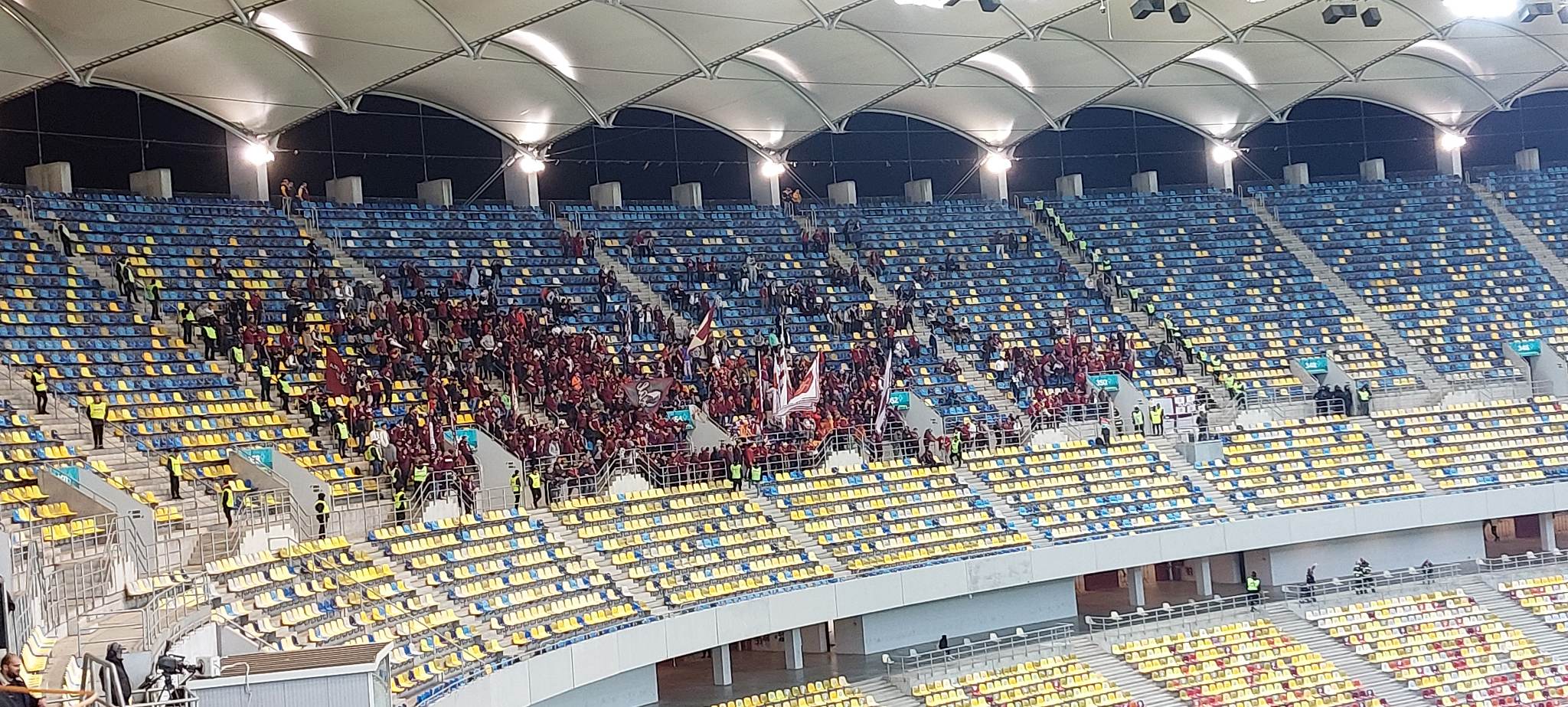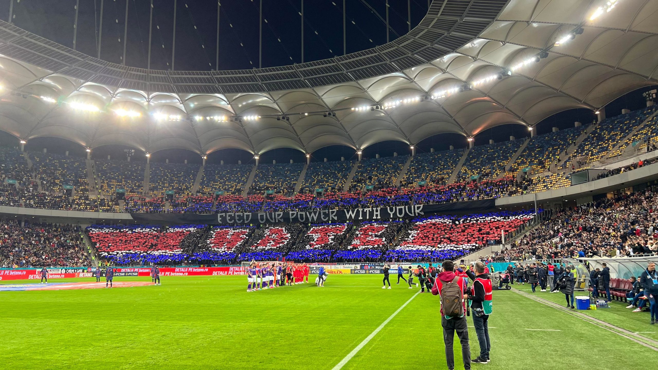 Fanii lui FCSB și ai Rapidului au prefațat derby-ul de pe Arena Națională cu un duel al scenografiilor. Din păcate, nu au lipsit invitațiile la ură și scandările rasiste. Partida a contat pentru runda a 17-a din Superliga.