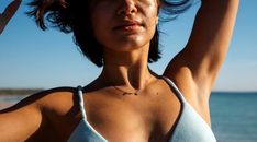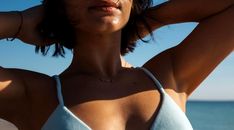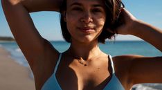 Șatena și-a pus pe ea costumul de baie de culoare deschisă și s-a lăsat fotografiată pe malul mării. Ea a completat ținuta de plajă cu un lănțișor argintiu. Ședința foto a fost realizată pe o plajă din comuna Tuzla, Constanța.