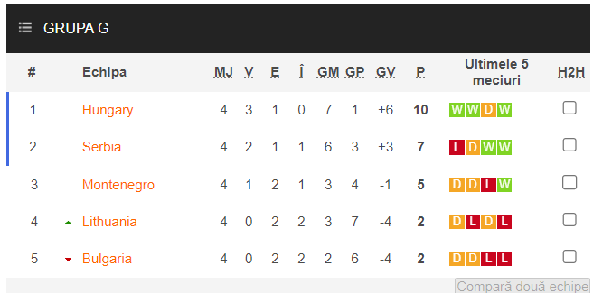 Puțin după finalul partidei de la Astana, la ora 19, începe Lituania – Muntenegru, un duel în care oaspeții nu-și pot permite un pas greșit dacă vor să fie prezenți la turneul final din Germania.