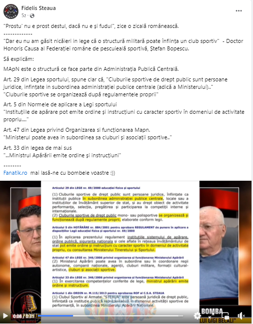 Nu a durat mult și fanii „militarilor” au ieșit la atac în mediul online. Mai exact, pe pagina de Facebook Fidelis Steaua, unde au combătut teoria lui Dumitru Dragomir, aducând următoarele argumente: