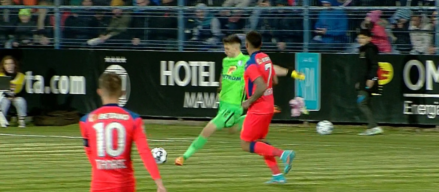 Mihai Aioani (22 de ani) a gafat incredibil în partida cu FCSB, care a contat pentru runda a 6-a din play-off. Portarul lui Gică Hagi i-a pasat direct lui Florin Tănase, care a reușit hat-trick-ul.