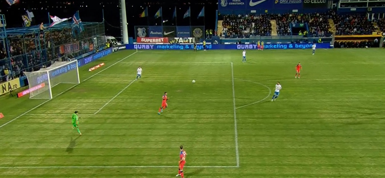 FCSB a zburdat pe terenul echipei lui Gică Hagi. Iar forma de zile mari a roș-albaștrilor a fost dovedită cel mai bine de Florin Tănase. Căpitanul lui Gigi Becali a deschis scorul din pasa lui Darius Olaru, ca apoi să înscrie din penalty.