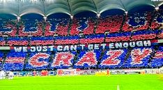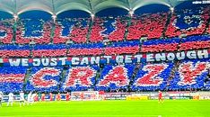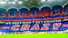 La începutul meciului de pe Arena Națională, galeria FCSB-ului a realizat o scenografie care s-a întins pe toată suprafața peluzei. Pe un fundal roș-albastru, fanii liderului din Superliga au afișat un mesaj în limba engleză: „Let’s go crazy / We just can’t get enough”.