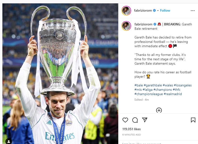 După 9 ani la Real Madrid, Bale a fost împrumutat în toamna lui 2020 la Tottenham. Nu a mai convins nici la echipa la care a făcut primii pași în fotbalul cu adevărat mare, iar în vara lui 2022 a venit mutarea în MLS, la Los Angeles FC.