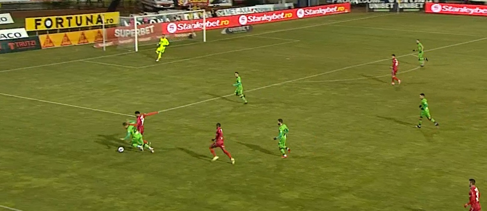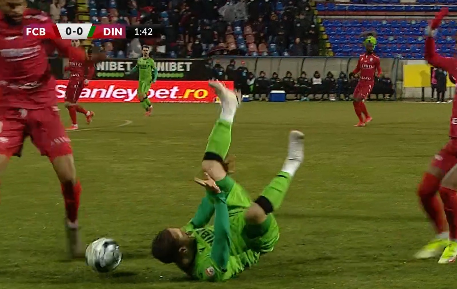 Marius Tomozei a simțit din plin forța mijlocașului francez. În minutul 3 al partidei de la Botoșani, fundașul lui Dinamo a intrat într-un duel umăr la umăr cu colosul din echipa lui Marius Croitoru. Și nu a ieșit deloc bine pentru fostul fotbalist al arădenilor de la UTA.