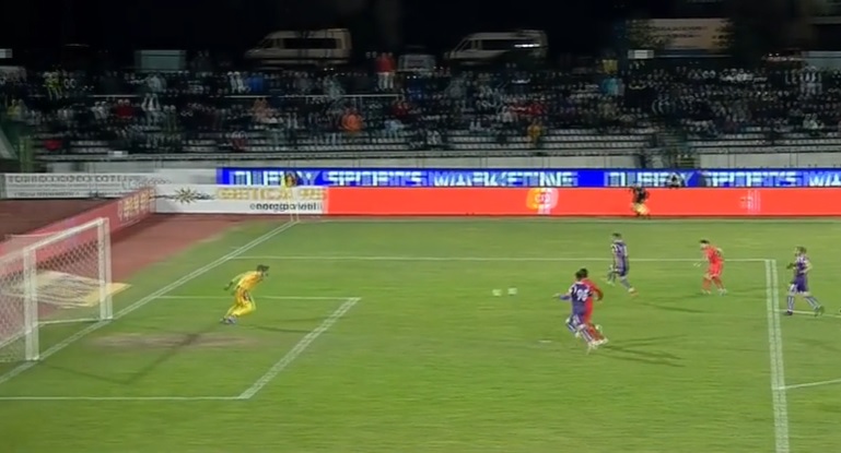 Tot răul spre bine pentru bănățean. Acesta a scăpat singur în careu, după o pasă a lui Adrian Șut. Și a fost neiertător. A șutat violent și l-a învins pe Straton cu o minge care s-a scurs pe sub fostul portar al FCSB.