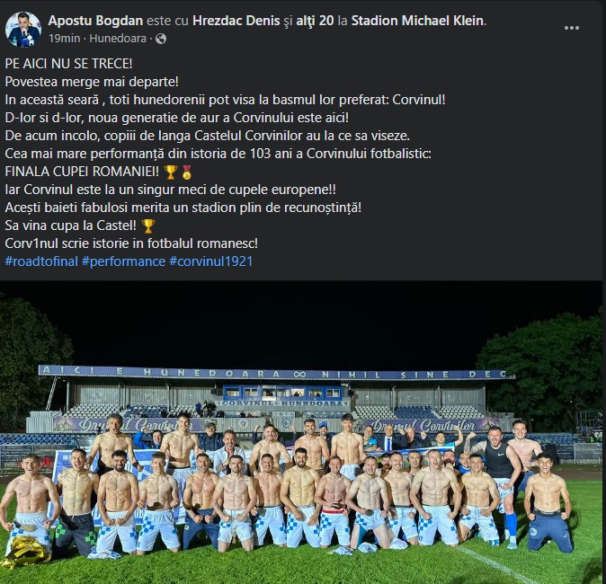 Cea mai mare performanță din istoria de 103 ani a Corvinului fotbalistic: