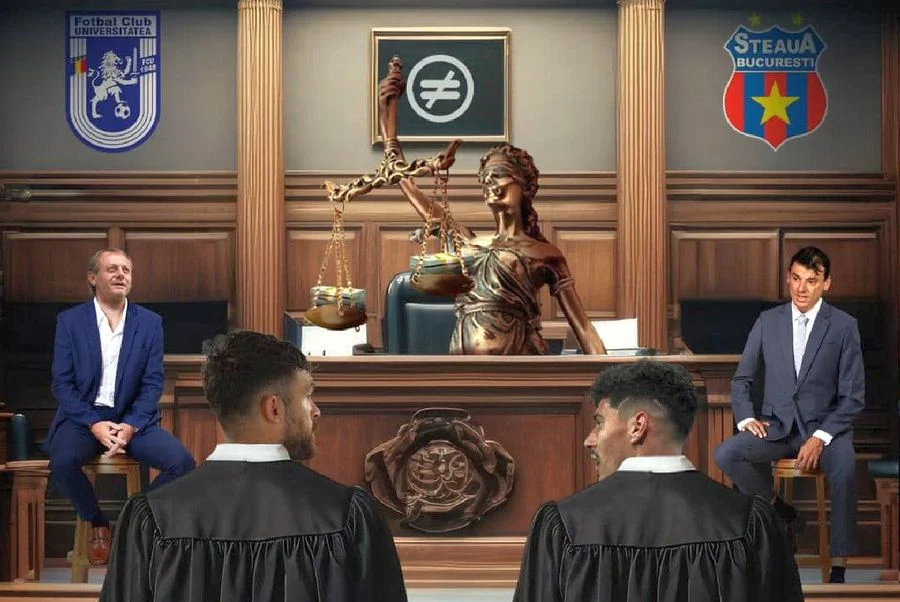 În ziua meciului, pe pagina oficială de Facebook a formației oltene a fost postată o fotografie controversată. Aceasta îi înfățișează, într-o sală de judecată, pe regretații Ilie Balaci și Didi Prodan, alături de zeița dreptății din mitologia greacă, Themis, care este legată la ochi și ține în mână o balanță ale cărei talere sunt pline cu bani.