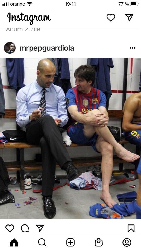 Pep Guardiola îl curtează pe Leo Messi prin mesaje subtile pe o rețea de socializare. Mai precis printr-o fotografie sugestivă, din perioada în care tehnicianul spaniol conducea formația unde starul argentinian a făcut carieră. Fiind deja liber să își negocieze un posibil transfer, Messi are de ales, de va face acest pas, între „cetățenii” din City și PSG, singurele grupări ce par capabile a-i satisface pretențiile financiare.