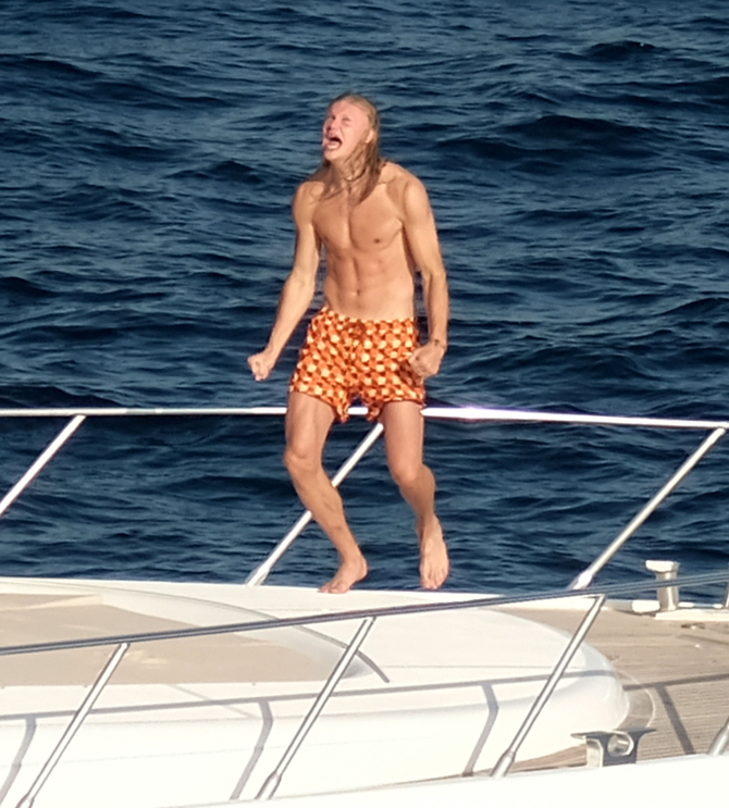 Cel mai spectaculos a fost momentul în care, fiind pe barcă, acesta a imitat celebrarea unui gol.