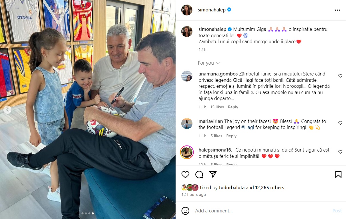 „Multumim Giga ?????? o inspiratie pentru toate generatiile! ❤️⚽️ Zambetul unui copil cand merge unde ii place❤️”, e mesajul pe care Simona l-a postat pe pagina sa de Instagram pentru a-i mulțumi lui Hagi.