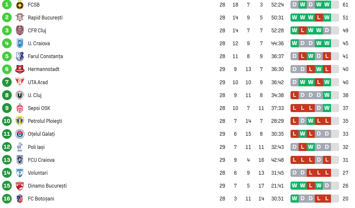 Hermannstadt a zdrobit-o pe Oțelul, scor 4-1, în etapa cu numărul 29 a Superligii. Golurile au fost marcate de Ianis Stoica cu o dublă, Daniel Paraschiv, Cristian Neguț, respectiv Samuel Teles.