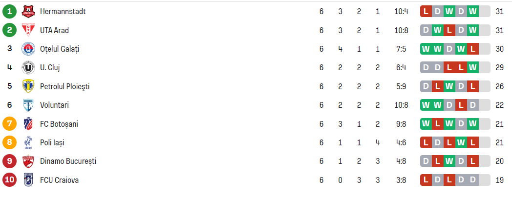 În urma acestui rezultat, sibienii au urcat pe prima poziție a jumătății de clasament, la egalitate de puncte cu UTA. Pe cea de-a treia treaptă se află Oțelul Galați, cu un punct mai puțin.